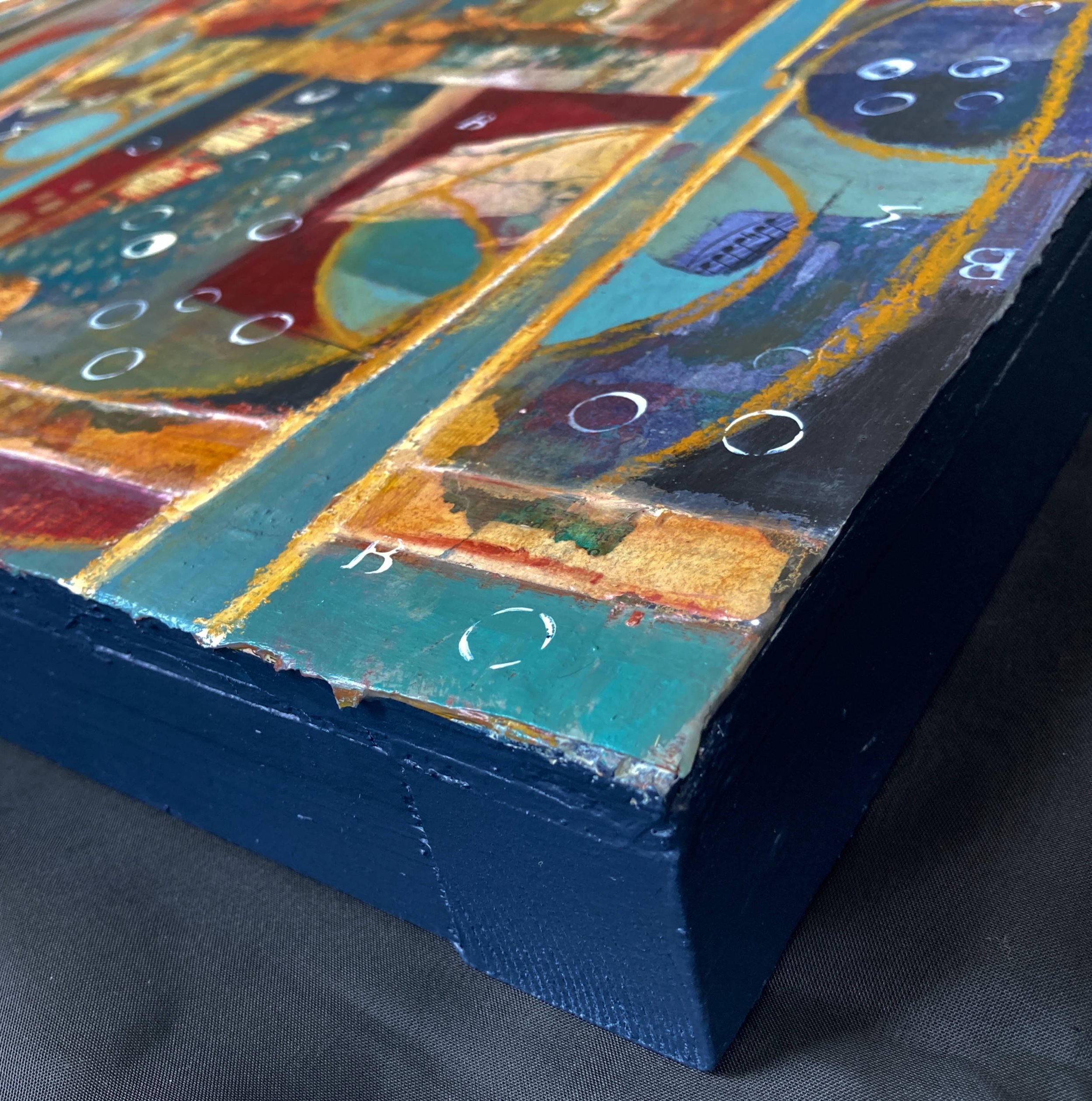 How do I paint sound? Is it the mark of rhythms? The sound and feel as I contact wood and leave a trace, press and imprint? I am always seeking the right accompanying music. Often that music is simply the ambient sounds of the breeze, birds, far-away and closer-in voices of the world around and outside my second-floor studio apartment in North Adams.